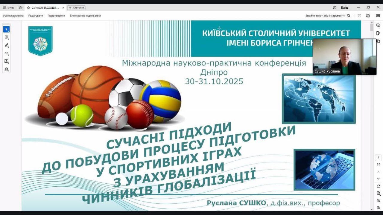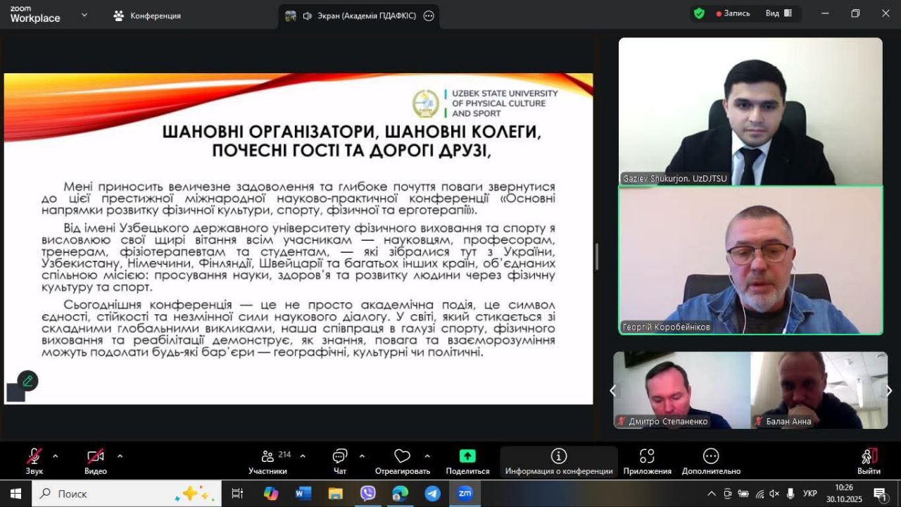 31 жовтня 2025 року здобувачі вищої освіти Університету митної справи та фінансів за спеціальністю «Фізична культура і спорт» разом із гарантом освітньої програми, Іриною Луценко, долучилися до Міжнародної науково-практичної конференції «Основні напрями розвитку фізичної культури, спорту, фізичної терапії та ерготерапії», організованої Навчально-науковим інститутом «Придніпровська державна академія фізичної культури і спорту» Українського державного університету науки і технологій. Захід пройшов у гібридному форматі з онлайн-участю понад 50 фахівців з вищих навчальних закладів України та зарубіжжя, включаючи 8 докторів наук з фізичного виховання та спорту, 30 кандидатів наук і доцентів, а також аспірантів і здобувачів освіти. Конференція стала платформою для обміну інноваційними підходами до підготовки спортсменів, акцентуючи на вдосконаленні тренувальних процесів у команних видах спорту.