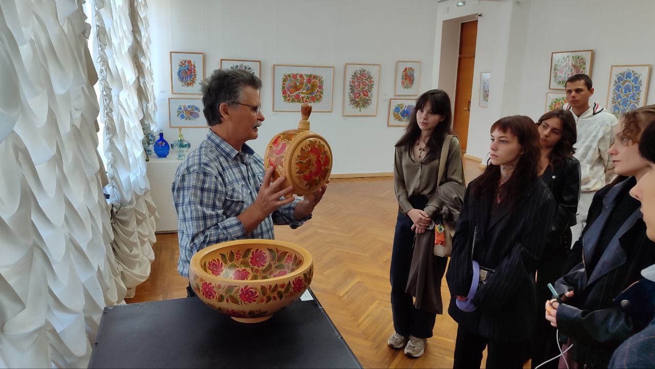 27 вересня студенти спеціальностей «Дизайн» і «Культурологія та музеєзнавство» зустрілися й поспілкувалися з віртуозом петриківського декоративного розпису, народним художником України Андрієм Пікушем.