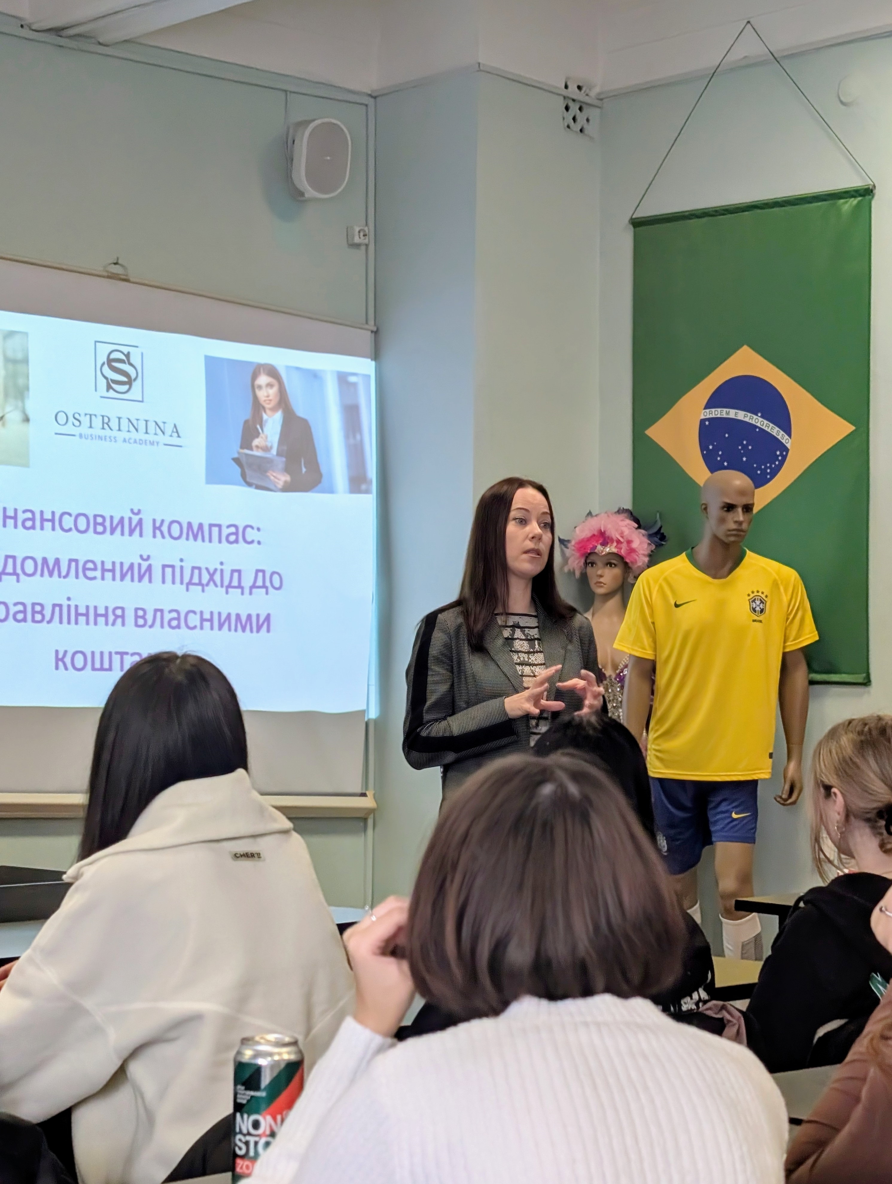 3 жовтня Олена Острініна, кандидат економічних наук, бізнес-коуч, банкір, Founder Ostrinina Business Academy, керівник Центру фінансової освіти УМСФ прочитала студентам-фінансистам лекцію «Інвестиції як ключовий інструмент для досягнення фінансової стабільності» і продовжила готувати майбутніх фінансистів до роботи у сучасних умовах. Жвавий інтерес викликали рекомендації досвідченого фахівця щодо забезпечення індивідуальної фінансової свободи і незалежності.