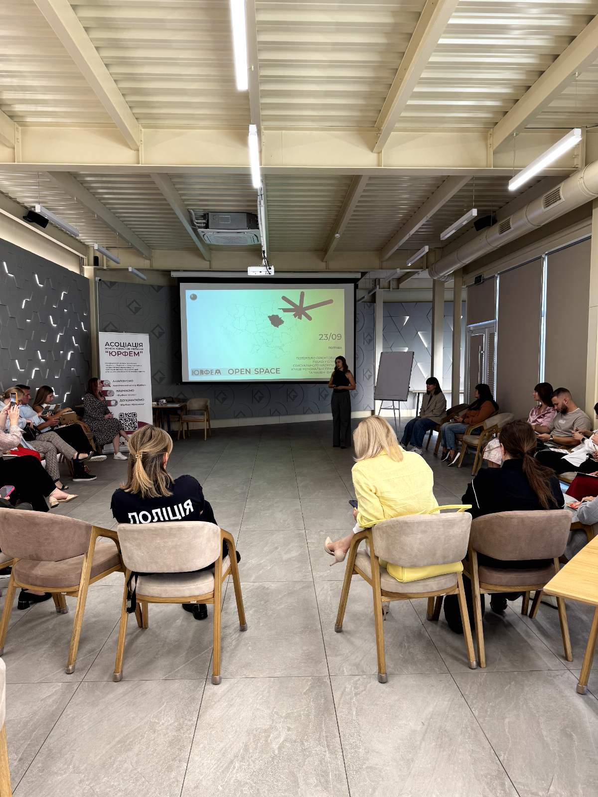 23 вересня 2025 року студентка 4 курсу групи МП 22-2 спеціальності Міжнародне право Анжеліка СОЛОМОН взяла участь у дискусії у форматі ЮрФем Open Space у м. Полтава. Це майданчик для відкритих дискусій, який організовується Асоціацією жінок-юристок України «ЮрФем» за участі юридичної спільноти, правозахисних та громадських організацій у кожному регіоні, які працюють із постраждалими від гендерно зумовленого насильства. Захід був зосереджений на виявленні викликів, перешкод та прогалин, які існують у практиці та на рівні законодавства щодо доступу до правосуддя постраждалих від сексуального насильства та впровадження потерпілоорієнтованих підходів у регіоні. Анжеліка СОЛОМОН мала змогу набути практичного досвіду та почути про реальні бар’єри та виклики у роботі з постраждалими від безпосередніх учасників процесу: представників поліції, прокуратури, суддів, адвокатів та психологів Полтавської області. Учасники дискусії також долучилися до обговорення та формування рекомендацій, які за результатами заходу будуть опрацьовані та надіслані до органів влади для врахування у їхній діяльності, включно зі змінами до законодавства та розробкою навчальних матеріалів для фахівців/чинь.