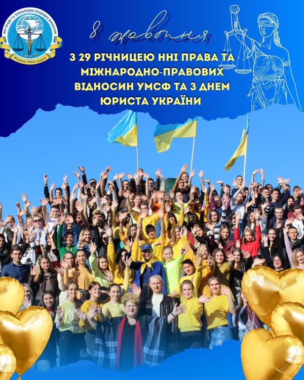 Вітаємо всіх із Днем юриста України та святкуємо 29 день народження Навчально-наукового інституту права та міжнародно-правових відносин УМСФ! ⚖️💙