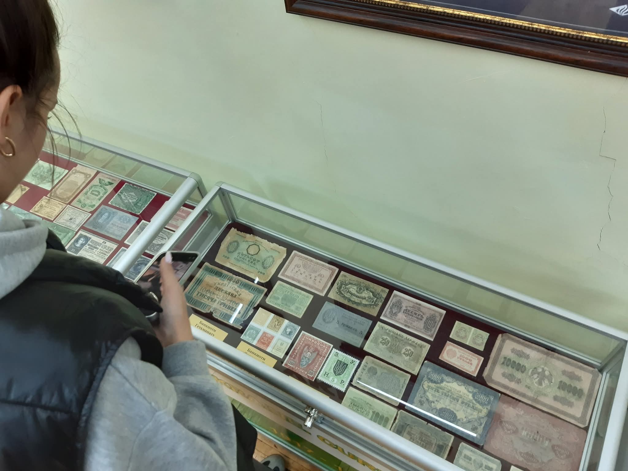 Практичне заняття з теми "Репортаж" здобувачів освітньої програми УМСФ "Журналістика, реклама та зв'язки з громадськістю" пройшло на базі виставки "Валюти світу". Майбутні медійники мали відшукати серед представлених експонатів такі "родзинки", які би зачепили увагу цільової аудиторії і не відпускали б її до фінального рядка матеріалу, записати враження відвідувачів виставки. А розповідати тут є про що і дивуватися є чому - копії срібних гривень часів Київської Русі, гроші періоду УНР, готівка, яку випускали бійці УПА, купони перших років Незалежності.