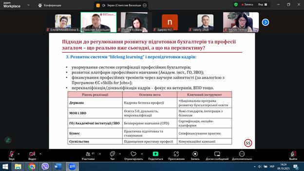 09 жовтня 2025 року викладачі кафедри обліку, аудиту, аналізу і оподаткування взяли участь у першому вебінарі  науково-педагогічного підвищення кваліфікації «Сучасні тренди, виклики та перспективи бухгалтерської й аудиторської професійної освіти та науки в умовах євроінтеграції».