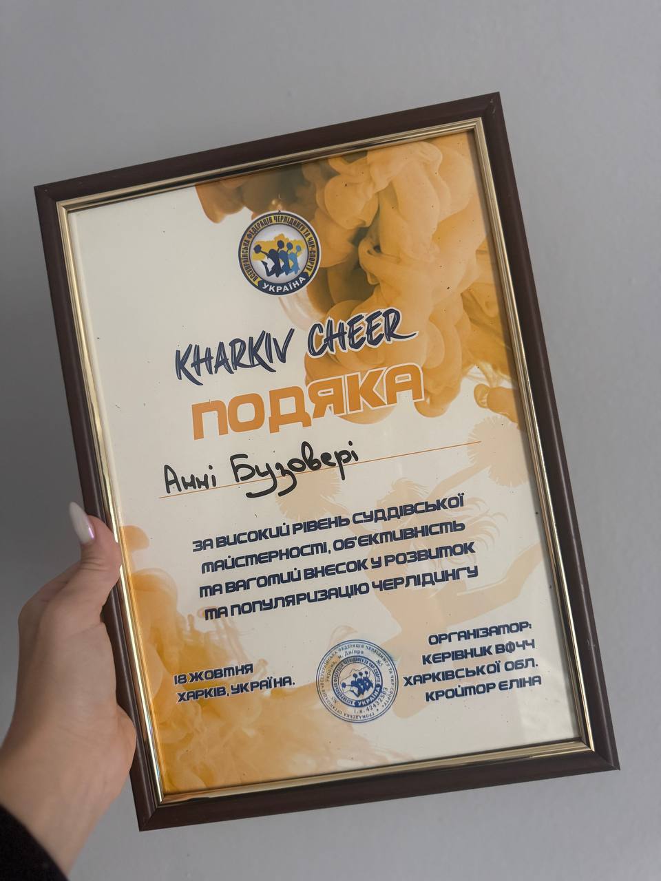 17-19 жовтня 2025 року доцент кафедри фізичного виховання та спеціальної підготовки Анна Бузоверя виступила у ролі головного судді Чемпіонату України з черлідингу та чирспорту, що відбувся у м. Харків.