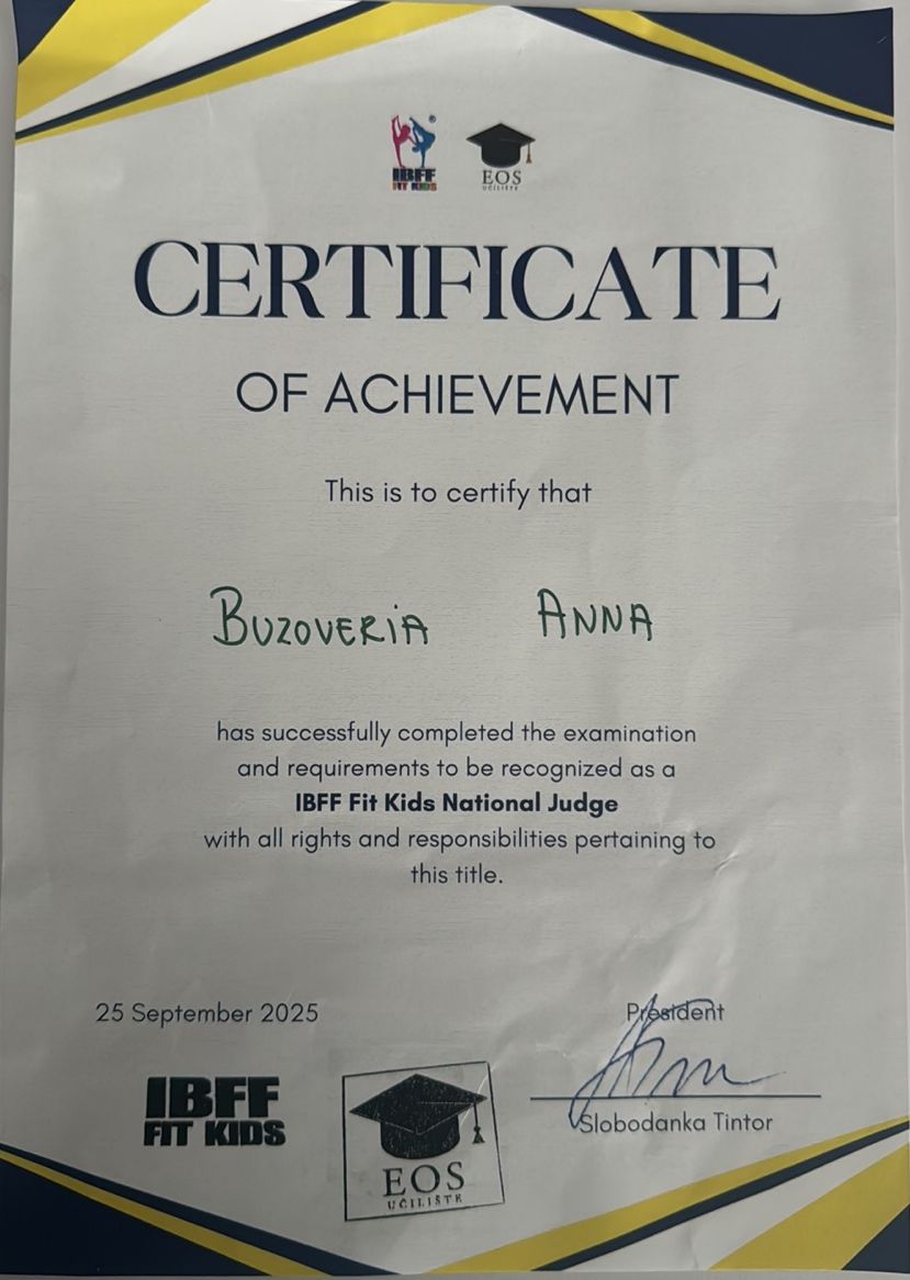 Та на цьому досягнення Анни Геннадіївни не завершуються. Наприкінці вересня вона, як головний тренер збірної команди України, представила нашу державу на Чемпіонаті світу IBFF FIT KIDS World Championship 2025, що проходив у мальовничому курортному місті Novalja (острів Pag, Хорватія).