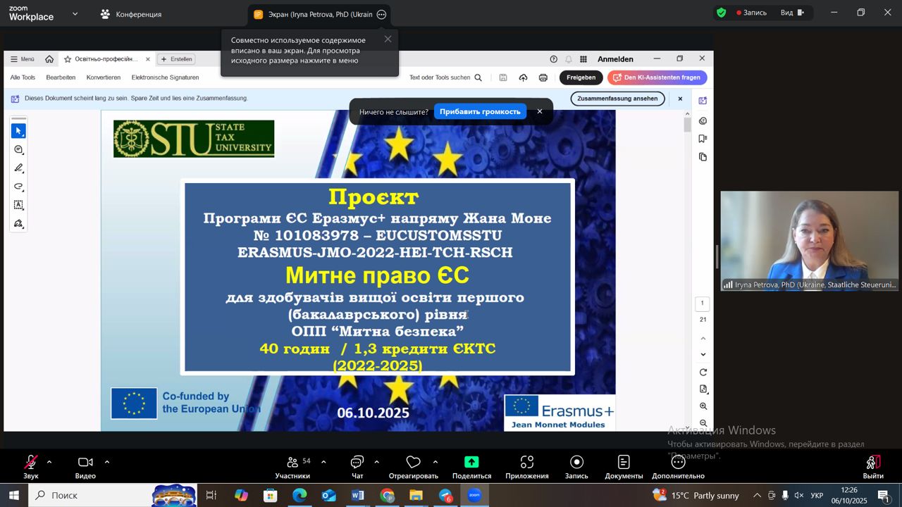 6 жовтня 2025 року завідувач кафедри міжнародного права Сергій ПЕРЕПЬОЛКІН, спільно зі студентами навчальної групи МП 25-1 ННІ права та міжнародно-правових відносин, взяли участь у науково-практичному круглому столі «Імплементація норм митного права ЄС в національне законодавство України в рамках європейської інтеграції», який відбувся на базі Державного податкового університету, в межах реалізації Проєкту ЄС Еразмус+ Жан Моне Модуль «Митне право ЄС». Під час заходу відбулася жвава дискусія щодо процесу наближення України до стандартів Європейського Союзу у галузі митного права. Учасники обговорили низку важливих питань, зокрема: особливості діяльності митних органів України, результати виконання рекомендацій Європейської Комісії у цій галузі, а також ключові положення проєкту нового Митного кодексу України. Участь представників спеціальності «Міжнародне право» УМСФ вдало поєдналася з темою науково-дослідної роботи кафедри міжнародного права та тематикою наукових пошуків членів одного з її студентських гуртків, а саме, спеціалізованого гуртка з конституційного права та права Європейського Союзу. За підсумками заходу його учасники отримали сертифікати про участь, які в майбутньому можуть бути визнані як доказ участі у неформальній освіті для зарахування додаткових балів в рамках науково-творчої діяльності за освітніми компонентами «Вступ до спеціальності» та «Конституційне право».