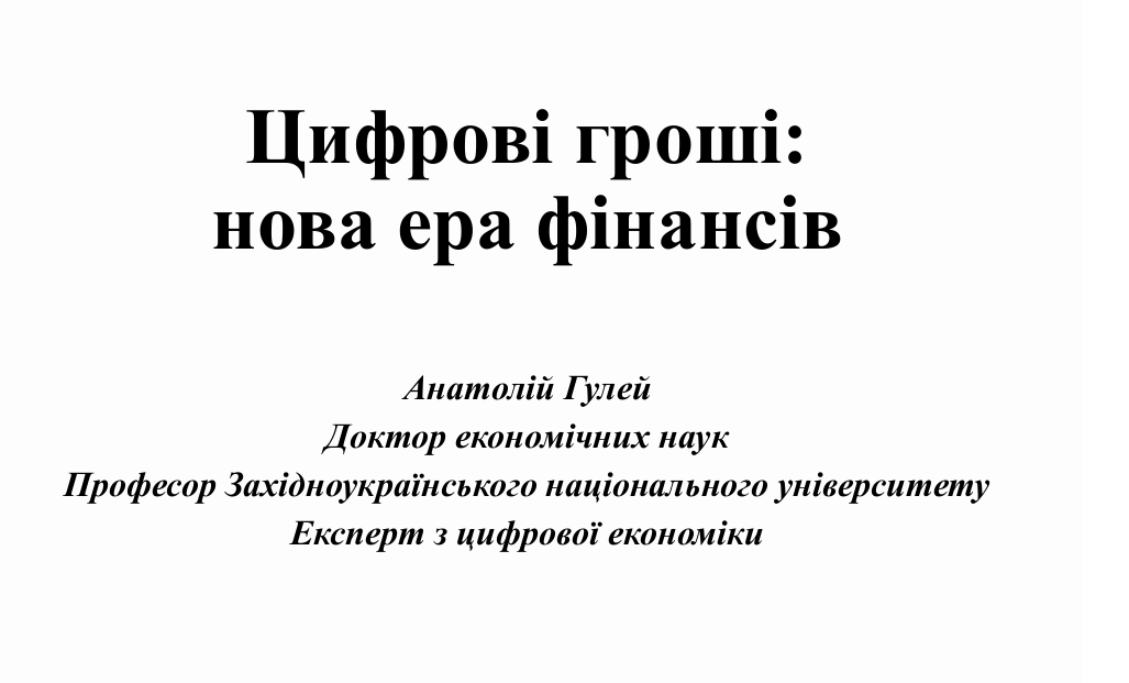 Професор Західноукраїнського національного університету, експерт з цифрової економіки д.е.н. Анатолій Гулей представив революційний матеріал під назвою «Цифрові гроші: нова ера фінансів» з оглядом форм сучасних електронних грошей, ризиків та викликів до суспільства, можливих напрямків їх розвитку. Якщо маєте бажання дізнатися про те, що таке гематрія, зазирнути у майбутнє фінансової системи, міфи про штучний інтелект, пропонуємо розглянути презентацію на сайті кафедри фінансів, банківської справи і страхування!