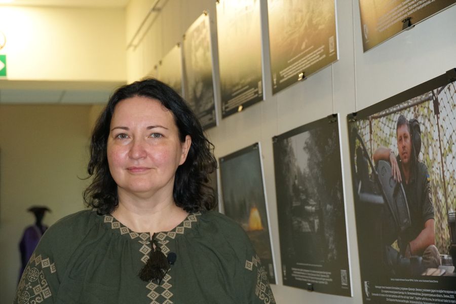 Авторка виставки, Оксана Чорна, розповіла про свою службу й шлях у війську. З початком повномасштабного вторгнення вона повернулася з Оману, де чотири роки працювала професором економіки в університеті MCBS. У березні 2022 року добровільно вступила до лав 57-ї окремої мотопіхотної бригади, де служила бойовим медиком і здійснювала евакуацію поранених з поля бою. Вона брала участь у боях під Лисичанськом, у наступальних операціях на Херсонщині та в обороні Бахмута. Згодом стала пресофіцеркою 53-ї ОМБр, а у листопаді 2024 року отримала підвищення в 23-тю бригаду.