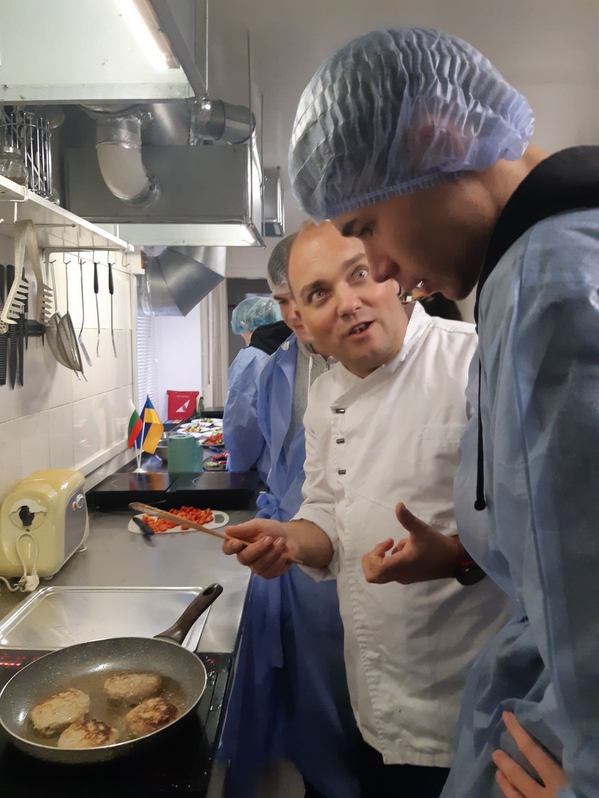 У навчальному «Кафе-бар» Університету митної справи та фінансів для здобувачів вищої освіти освітньо-професійної програми «Готельно-ресторанна справа» відбувся майстер-клас на тему: «Традиційні страви болгарської кухні». Тренінг-практикум проводили Олексій Котов – шеф-кухар ресторану азіатської кухні готельно-ресторанного комплексу «Dreams Sunny Beach Resort and Spa – Premium All Inclusive», що розташований на болгарському морському курорті «Сонячний берег» неподалік від центру міста Бургас, а також Сергій Хричов – су-шеф ресторану цього чотиризіркового готельного комплексу. У заході приймали участь професор Олена Юдіна та доцент Олена Вишнікіна.