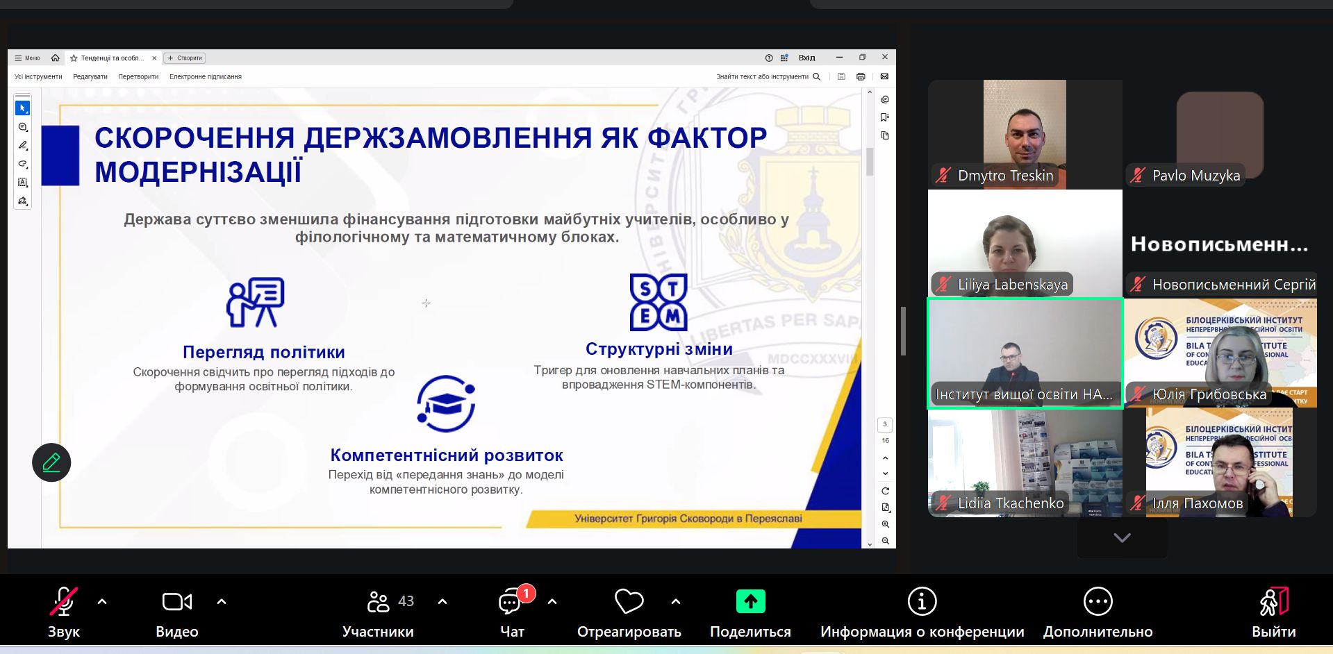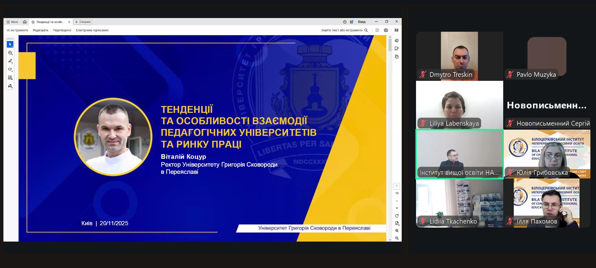 20 листопада 2025 року доценти кафедри міжнародного права Лілія ЛАБЕНСЬКА, Людмила ФІЛЯНІНА та старший викладач Дмитро ТРЕСКІН взяли участь у методологічному семінарі «Тенденції та особливості взаємодії вищої освіти та ринку праці в умовах війни та повоєнного відновлення України», організованому Національною академією педагогічних наук України, Інститутом вищої освіти НАПН України та ДЗВО «Університет менеджменту освіти».