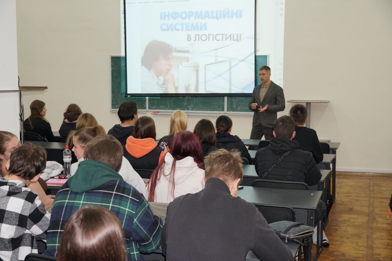 Всеукраїнський День Логіста у 2025 році буде відмічатися 28 листопада. До цієї події випускова кафедра підготувала цикл зустрічей із стейкхолдерами. Так, до студентів першого курсу, які навчаються за освітньою програмою «ЛОГІСТИКА» (спеціальність D3 Менеджмент) завітав почесний гість з Одеси - Шевченко Едуард Андрійович, головний фахівець митної справи Асоціації імпортерів та декларантів України, директор транспортно-логістичної компанії ТОВ «Graincom Shipping».