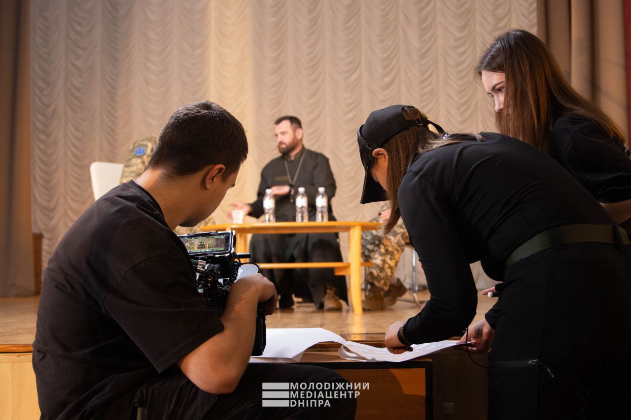 У головних ролях - військовослужбовець і випускник нашої військової кафедри Тимофій Хом'як, інструкторка й фахівчиня з військового обліку УМСФ Анна Трофименко, капелан ПЦУ отець Андрій (Карпенко). Лінійним продюсером зйомок виступив наш студент Микита Іграєв, а оператором - колишній студент Даниїл Федорець, монтаж відзнятого матеріалу здійснив ще один наш студент - Ілля Яценко. У масових сценах також брали участь студенти та співробітники УМСФ і всі, кому це було цікаво.