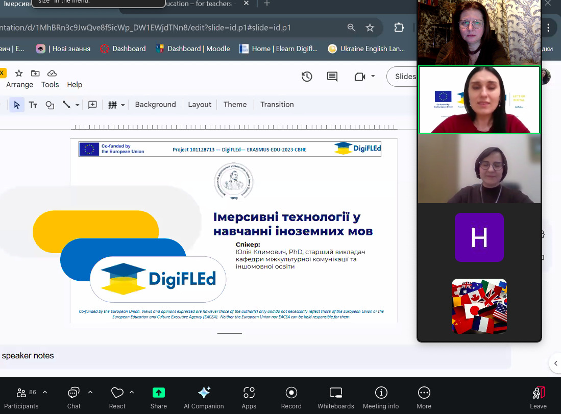 Цей захід став продовженням серії вебінарів, спрямованих на осучаснення процесу викладання іноземних мов. Зокрема, 21 листопада 2025 року відбувся онлайн-вебінар «Цифрові та AR інструменти у розвитку вмінь читання англійською мовою», організований Тернопільським національним педагогічним університетом імені Володимира Гнатюка також у межах проєкту Erasmus+ DigiFLEd. Подія стала надзвичайно інформативною та натхненною, відкривши нові можливості для осучаснення викладання іноземної мови в цифрову епоху.