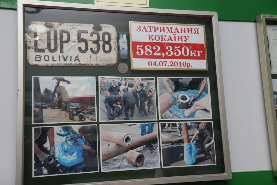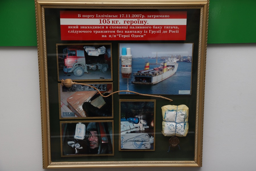 Другу позицію в контрабандному рейтингу впевнено займають наркотичні засоби. Для великих партій знову ж таки переважає морський шлях. В експозиції – приклади вилучень героїну і кокаїну, датовані 2007–2010 роками: ламінатні ламелі, труби, контейнери з багатошаровими сховками.