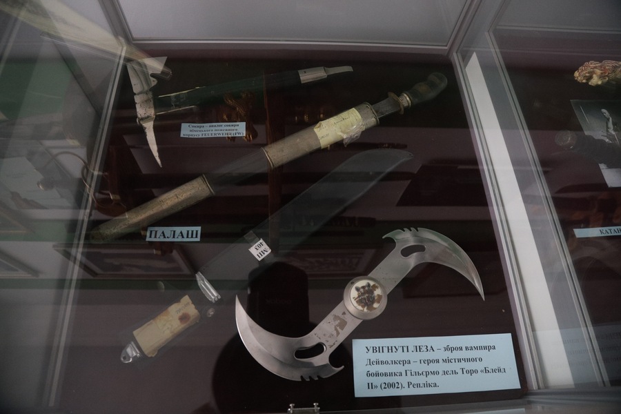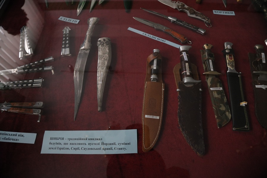 Ще одна популярна категорія – холодна і вогнепальна зброя. Ножі, кортики, багнети, навіть пістолети-запальнички. Частина з них – сувенірні репліки, але є й оригінали, пов’язані з різними військовими традиціями: від європейських до азійських.