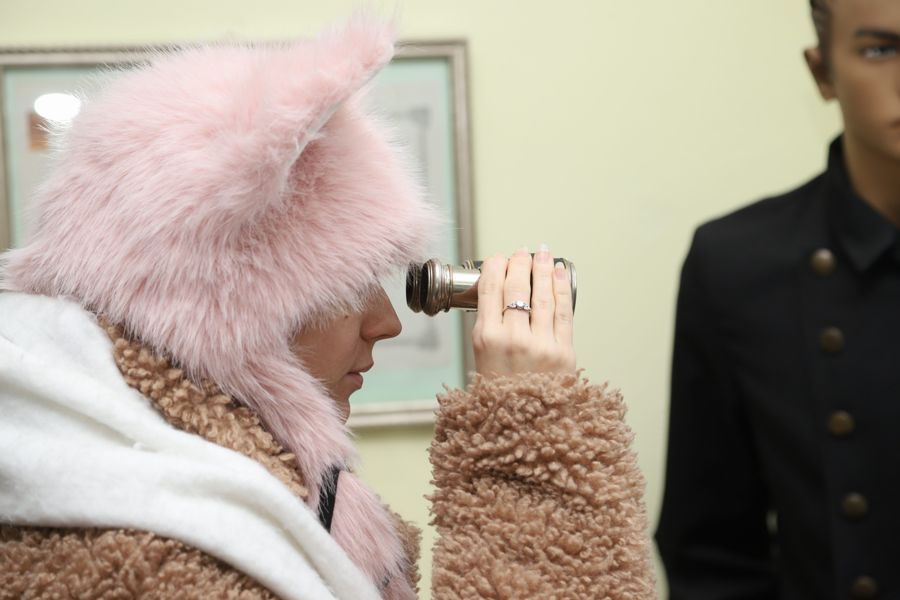 Журналіст пробує “відшукати контрабанду” у внутрішньому дворику УМСФ через бінокль митника