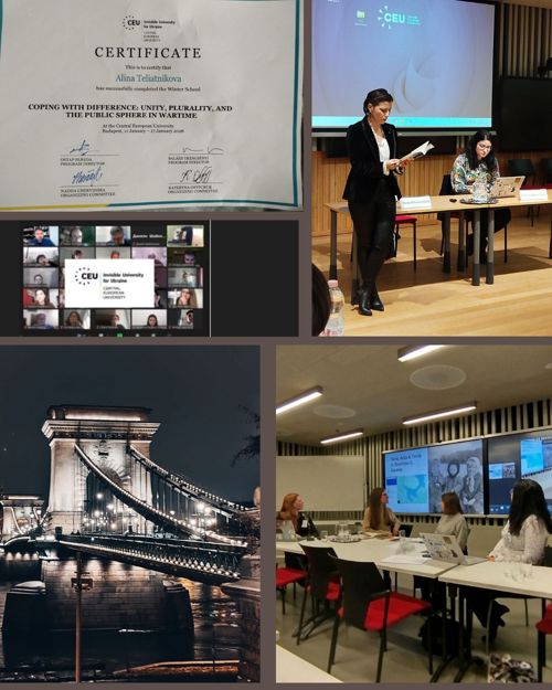 Студентка-міжнародниця Аліна Телятнікова взяла участь у IV IUFU Winter School «Coping with Difference: Unity, Plurality, andthe Public Sphere in Wartime» в Будапешті на кампусі Центральноєвропейського університету.