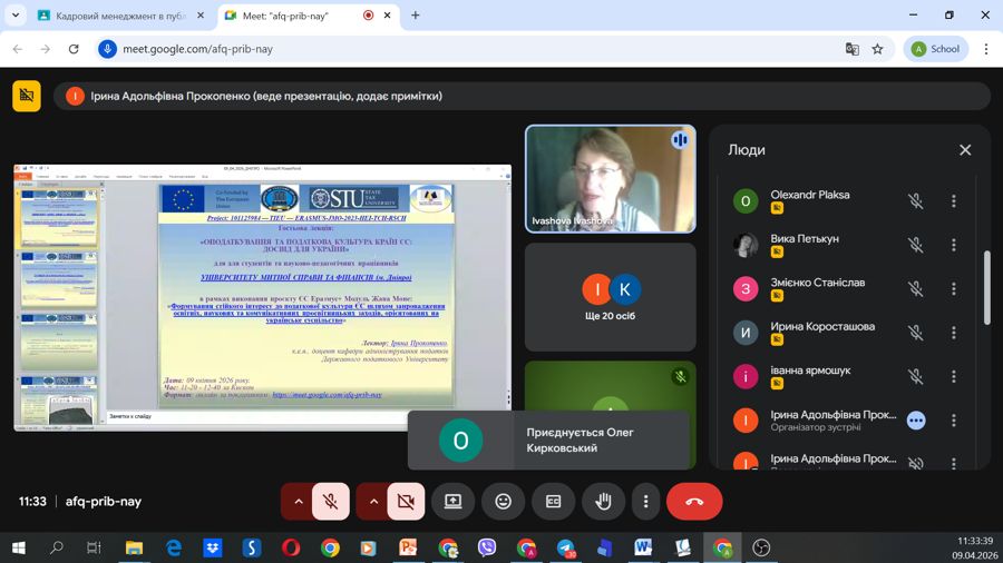 9 квітня 2026 року в Університеті митної справи та фінансів відбулася важлива освітня подія для студентів і викладачів – гостьова лекція, присвячена європейським підходам до формування податкової культури.