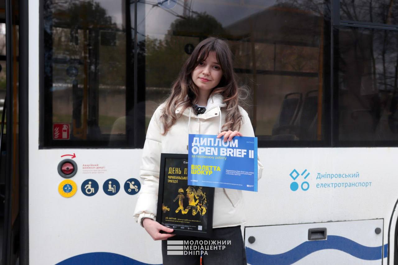 З умовами конкурсу блискуче впоралися наші талановиті майбутні дизайнерки гр. Д25 Шокур Віолетта і Мороз Ярослава й посіли призові місця. Їхні проєкти завдяки Молодіжному медіацентру Дніпра будуть реалізовані в міському просторі, і ми всі зможемо з ними ознайомитися. Своєю ідеєю візуалізації Чорнобильської катастрофи вразила журі й робота Бранціри Анастасії, яка також навчається на спеціальності «Дизайн» УМСФ.