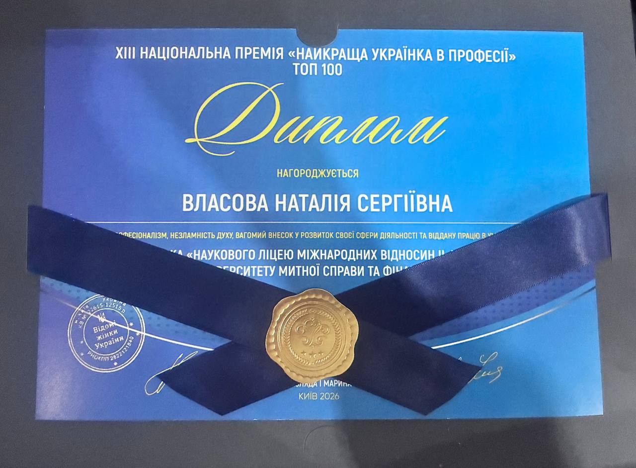 До фіналу увійшли 100 найяскравіших представниць різних сфер — від медицини та освіти до бізнесу й інженерії. Серед відзначених номінанток Премії представниця м.Дніпра - директорка Наукового ліцею міжнародних відносин Університету митної справи та фінансів Власова Наталія Сергіївна. Вітаємо з почесною відзнакою та бажаємо подальших успіхів у професійній діяльності!