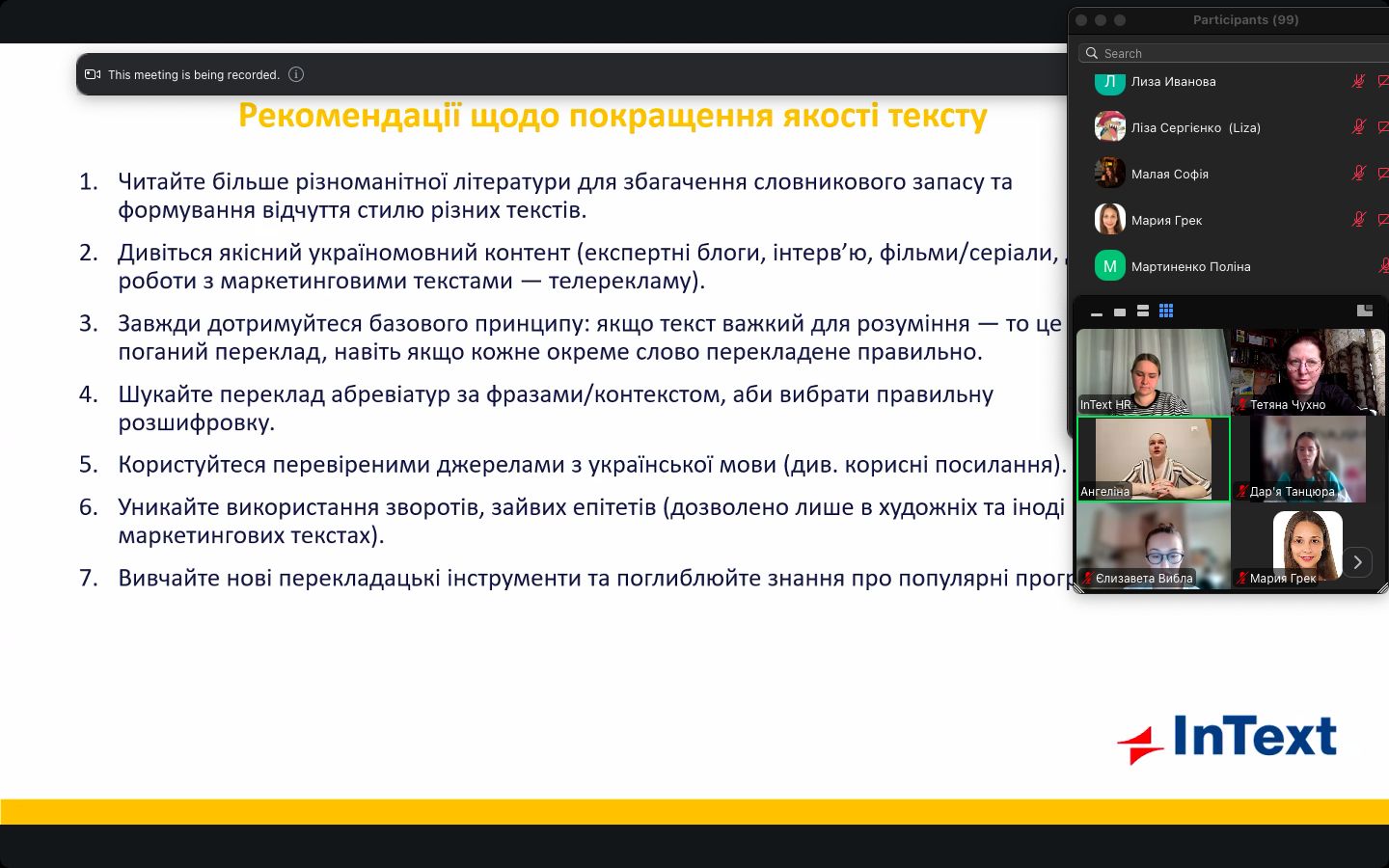 У межах партнерства з нашим стейкґолдером – лінгвістичною компанією InText – 8 жовтня студенти-філологи мали унікальну нагоду долучитися до лекції «Мистецтво перекладу: від помилок до майстерності».