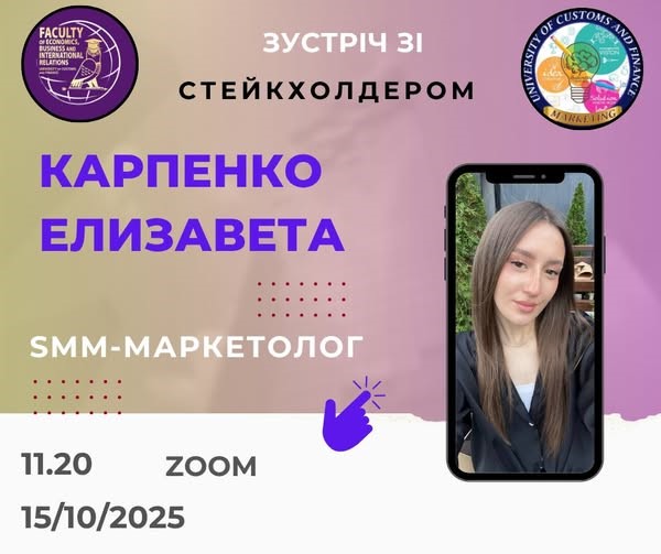 У рамках підготовки висококваліфікованих фахівців з маркетингу відбулася змістовна зустріч здобувачів вищої освіти спеціальності 075 Маркетинг з практиком галузі - Єлізаветою Карпенко, SMM-маркетологом.