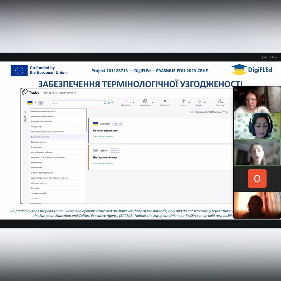 30 жовтня 2025 року доцент кафедри Чухно Тетяна Володимирівна взяла участь у вебінарі, організованому Донецьким національним університетом імені Василя Стуса в межах освітнього проєкту Erasmus+ DigiFLEd.