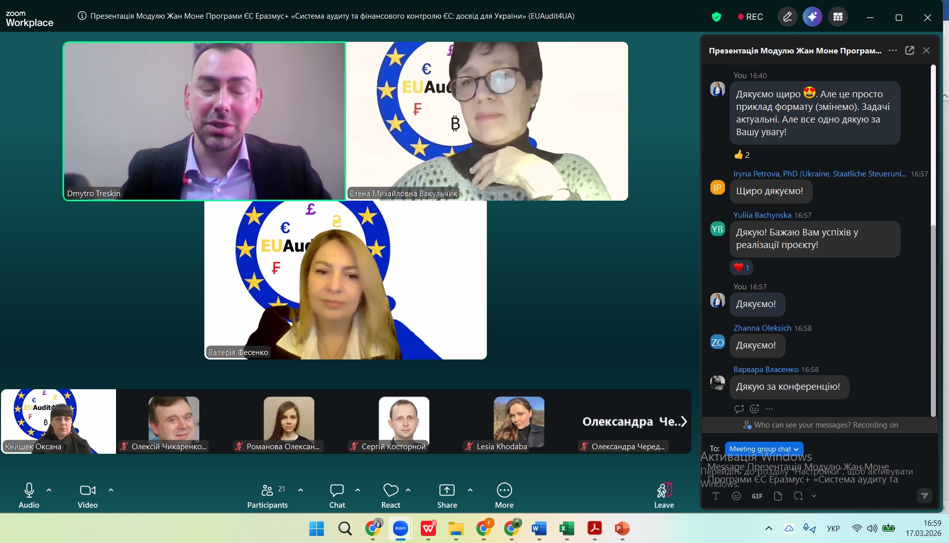 17 березня 2026 р. в Університеті митної справи та фінансів відбулася презентація міжнародного освітнього проєкту «EU System of the Audit and Financial Control: Experience for Ukraine (EUAudit4UA)», що реалізується в межах програми ERASMUS+ (Jean Monnet Module) у 2024–2027 роках.