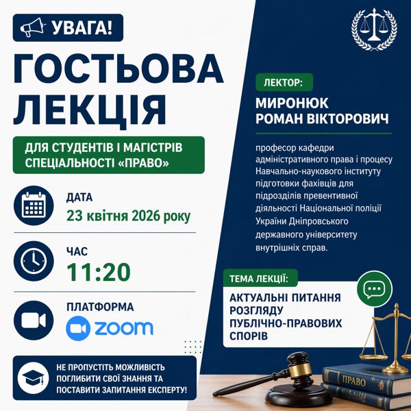 Сьогодні о 11:20 на платформі Zoom відбудеться гостьова лекція.