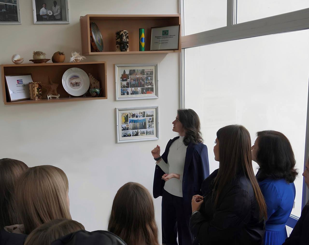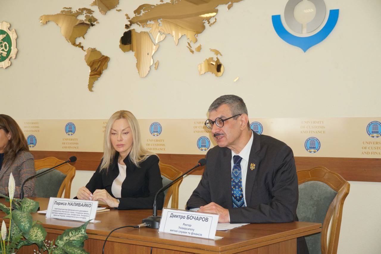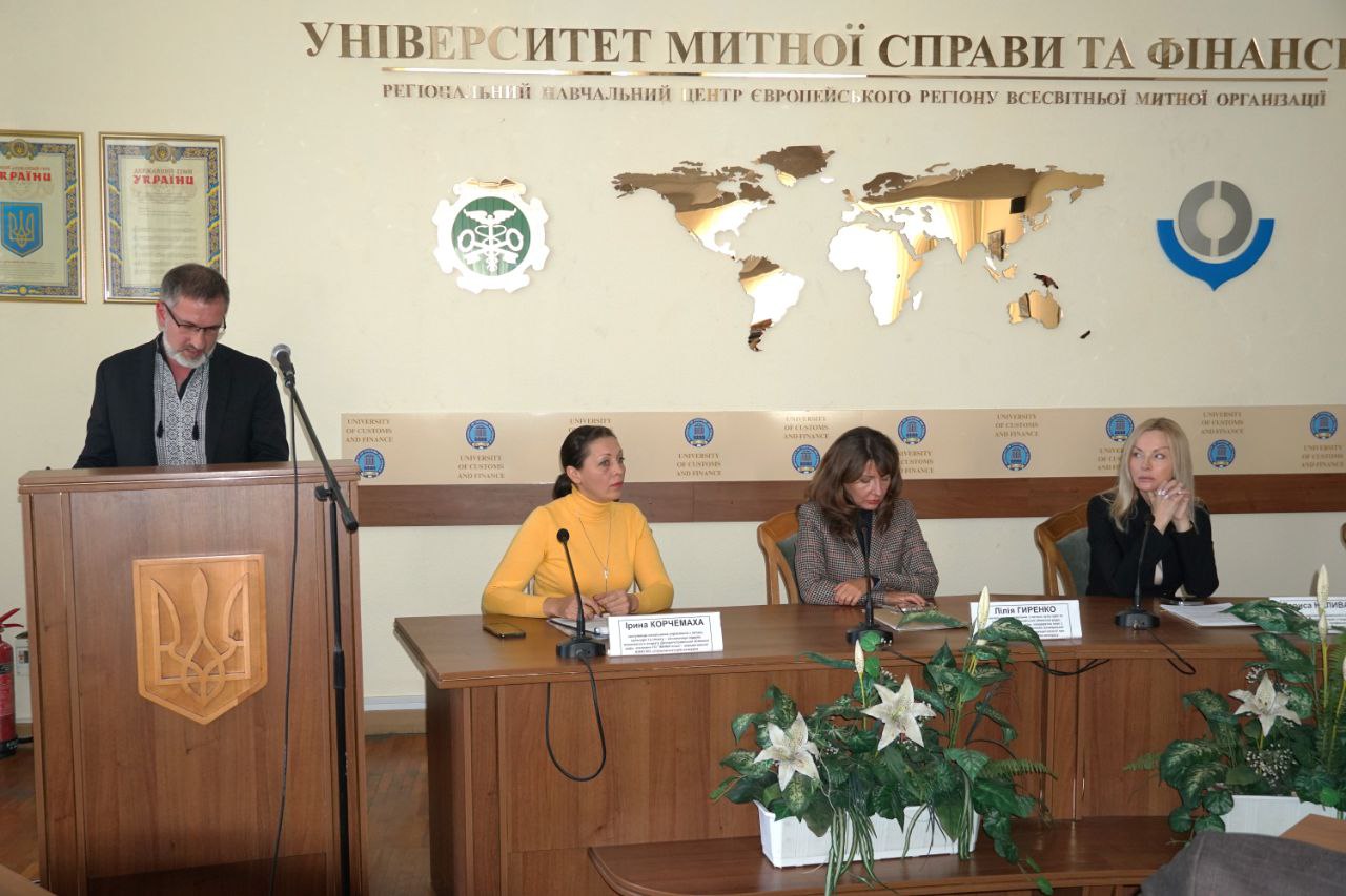Зустріч розпочалася зі вступного слова ректора УМСФ Дмитра Бочарова та першого проректора Віктора Ченцова, які познайомили гостей з Університетом та розповіли гостям про вклад нашого навчального закладу в збереження та поширення міжнародної нематеріальної культурної спадщини в межах Дніпропетровщини.