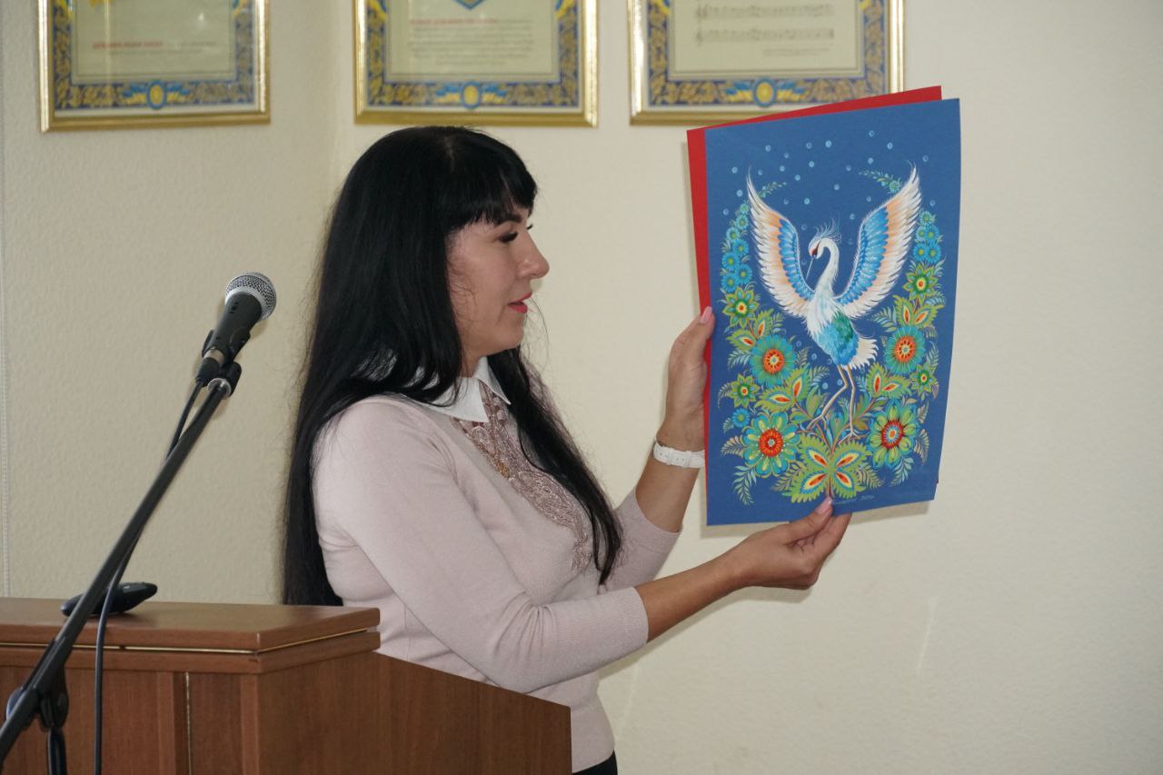 Презентацією елементів НКС Дніпропетровщини на прикладі Петриківського розпису, який вже12 років знаходиться у Репрезентативному списку ЮНЕСКО, опікувались Вікторія Тимошенко та Любимова Анастасія. Із зразками загальновідомої візитівки нашого краю гості могли ознайомитись в холі Університету, де знаходиться артгалерея Петриківського розпису.