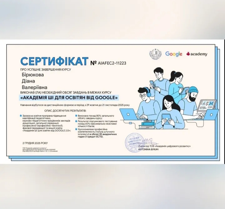 - Онлайн-курс «Академія ШІ для освітян від Google».