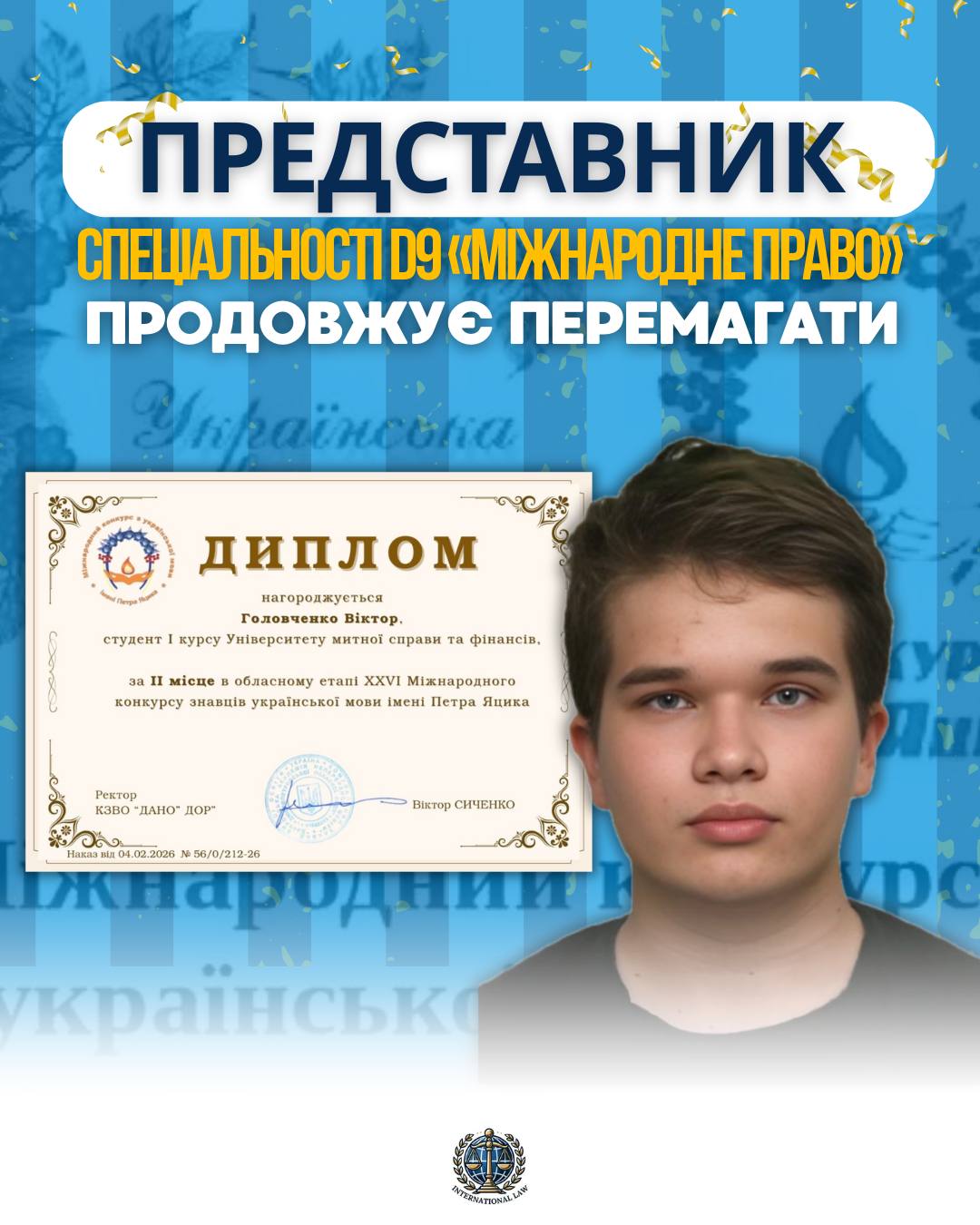 Щиро вітаємо Владислава з результатом, який підтверджує його наполегливість, дисципліну та вміння працювати на високий рівень. Бажаємо нових перемог і впевненого руху вперед.