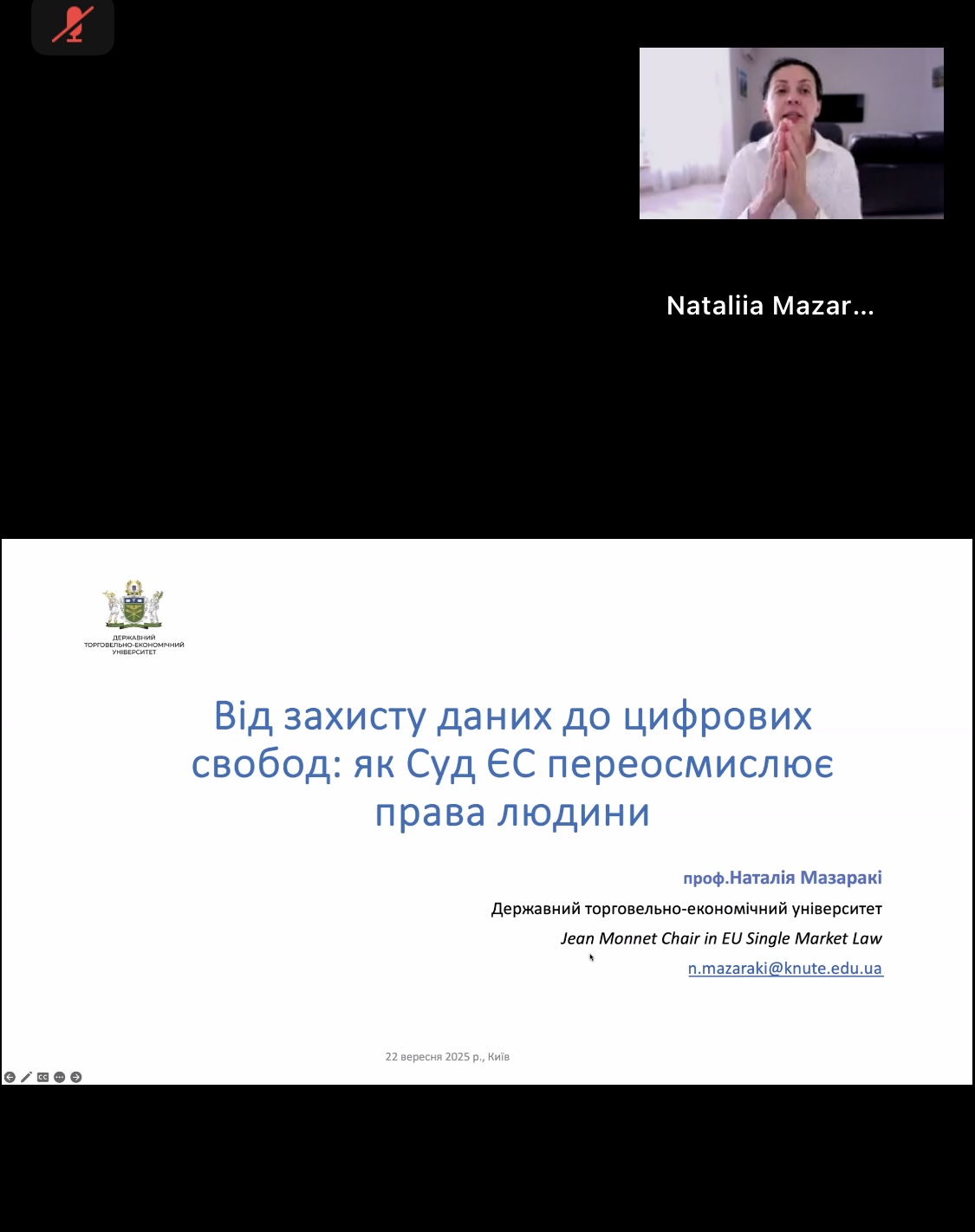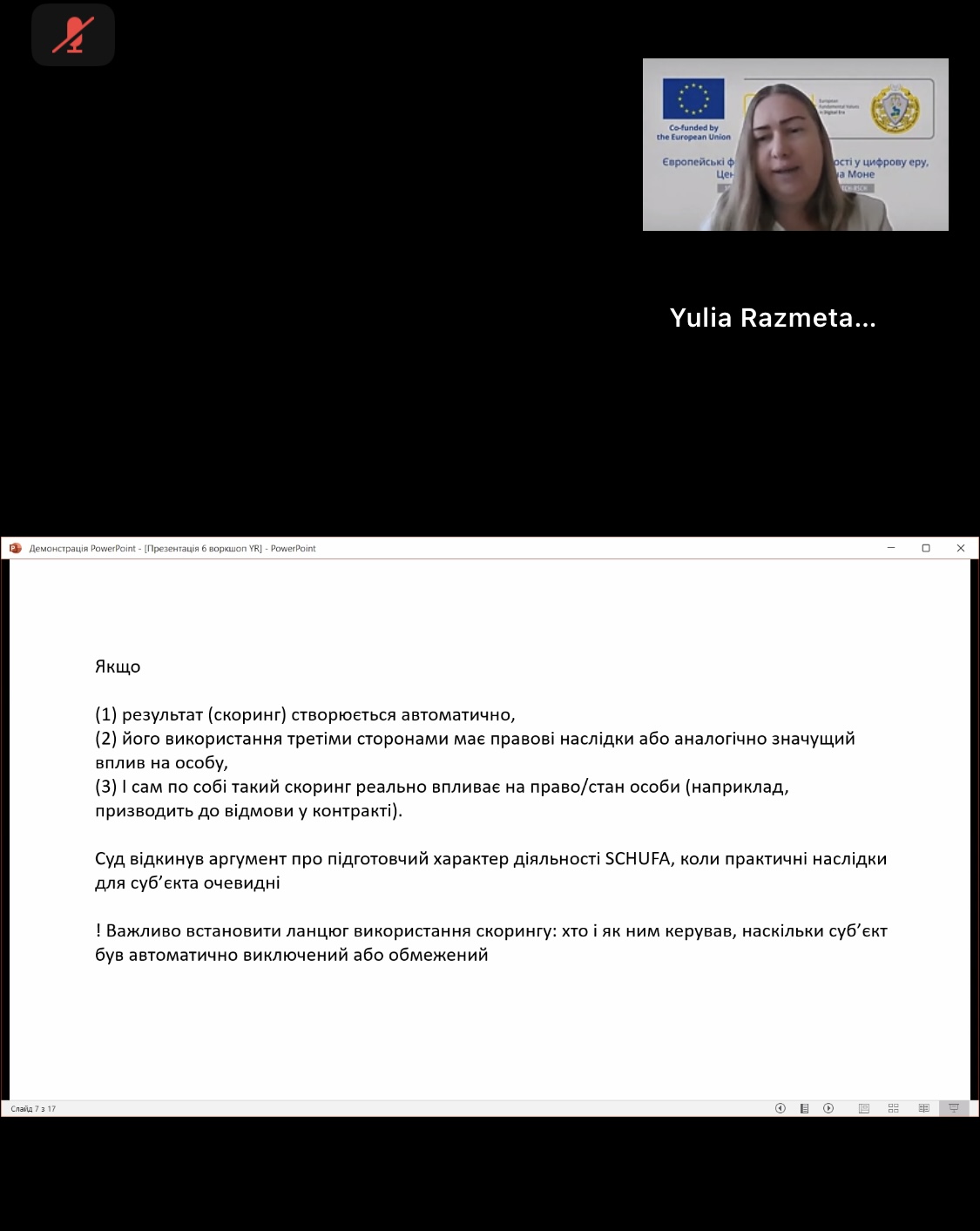 Були представлені лекції: Наталії Мазаракі (Державний торговельно-економічний університет) «Від захисту даних до цифрових свобод: як Суд ЄС переосмислює права людини»; Петра Сухорольського (Інститут гуманітарних та соціальних наук, Національний університет «Львівська політехніка») «Право бути забутим та свобода вираження: проблема балансування» та Юлії Размєтаєвої (Національний юридичний університет імені Ярослава Мудрого та Уппсальський університет) «Право не бути підданим автоматизованому прийняттю рішень у практиці Суду ЄС та ЄСПЛ». Перший день роботи закінчився Експертним обговоренням «Плану дій щодо вдосконалення української правової системи щодо різних питань, спричинених або сформованих глобальною цифровізацією».