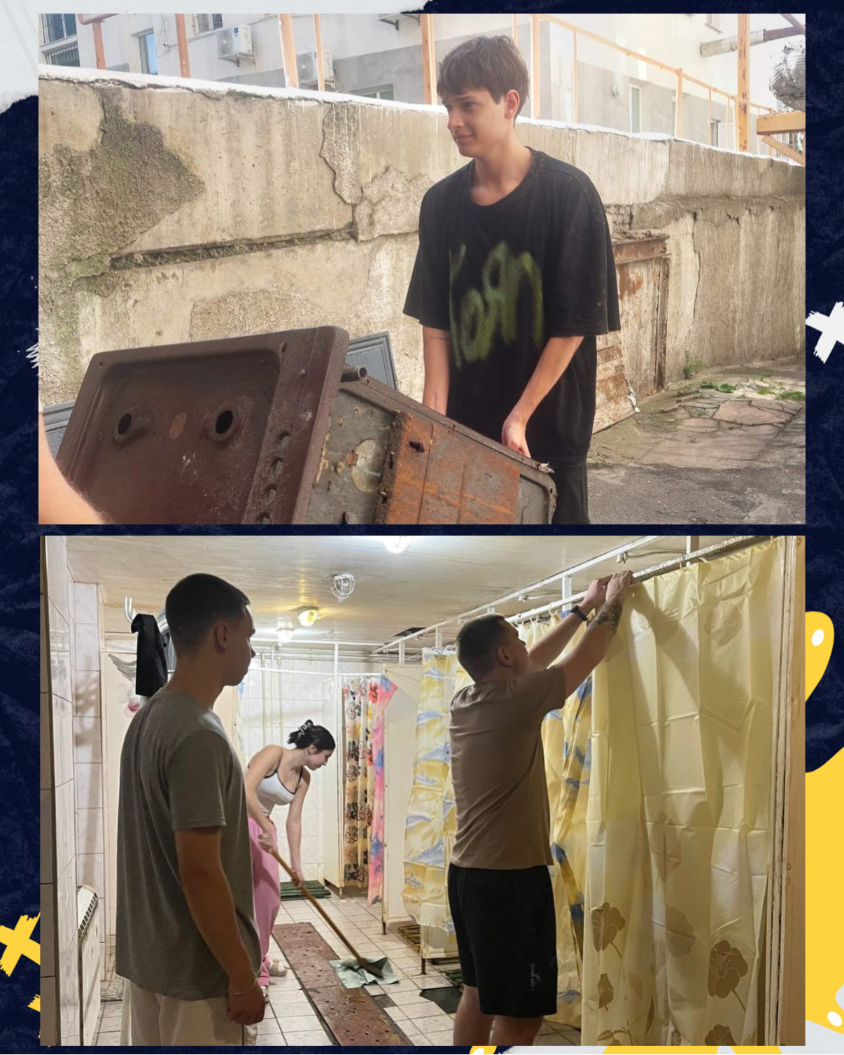 - винесли сміття після ремонтних робіт з гуртожитків, прибирали балкони та прилеглі ділянки.