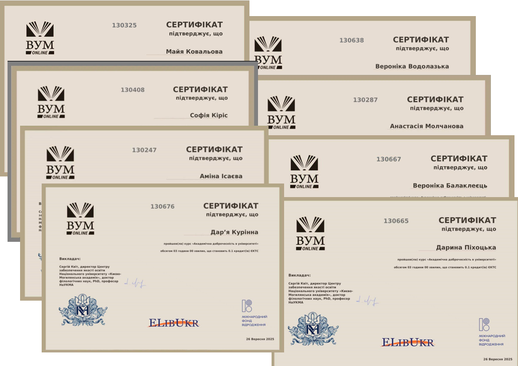 Також студентам було запропоновано пройти курс «Академічна доброчесність в університеті», який створений на платформі ВУМ online Сергієм КВІТОМ. Тож можемо привітати першокурсників, які навчаються на спеціальності С1 Економіка та міжнародні економічні відносини за ОП «Податкова справа», з першими сертифікатами та першими зарахованими балами за неформальною освітою!