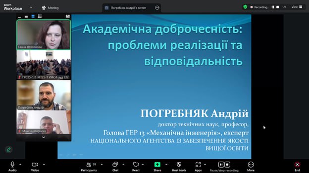 Під час заходу в інтерактивному форматі обговорили ключові категорії академічної доброчесності – чесність, довіра, справедливість, повага, відповідальність, сміливість. Окрему увагу було приділено опису університетської системи забезпечення академічної доброчесності.