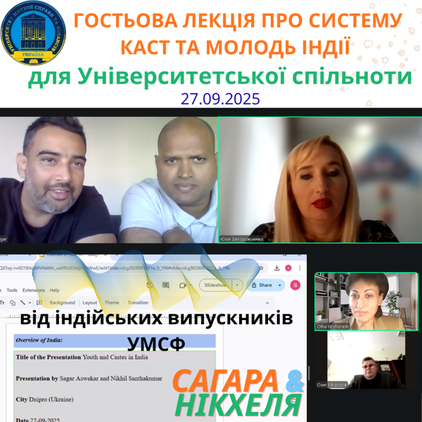 27.09.2025 р. в онлайн режимі індійські випускники Сагар та Нікхель зустрілися з університетською спільнотою, серед якої - викладачі, студенти та шановні партнери.