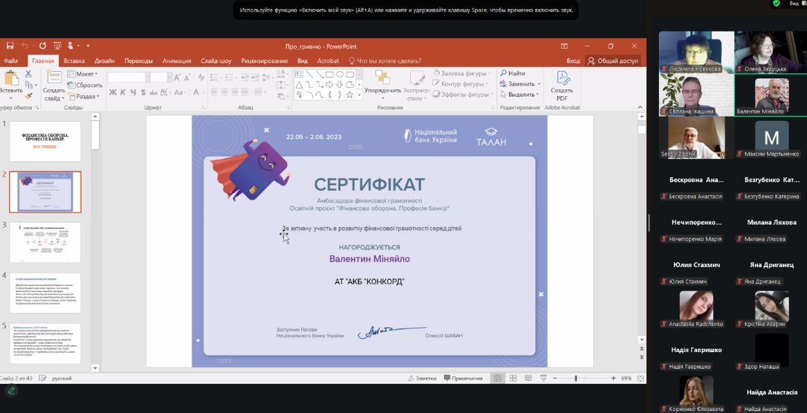 1 жовтня відбулося засідання Регіонального центру інноваційного розвитку банківської системи України за участі викладачів кафедри фінансів, банківської справи і страхування та здобувачів освіти за спеціальністю D2.