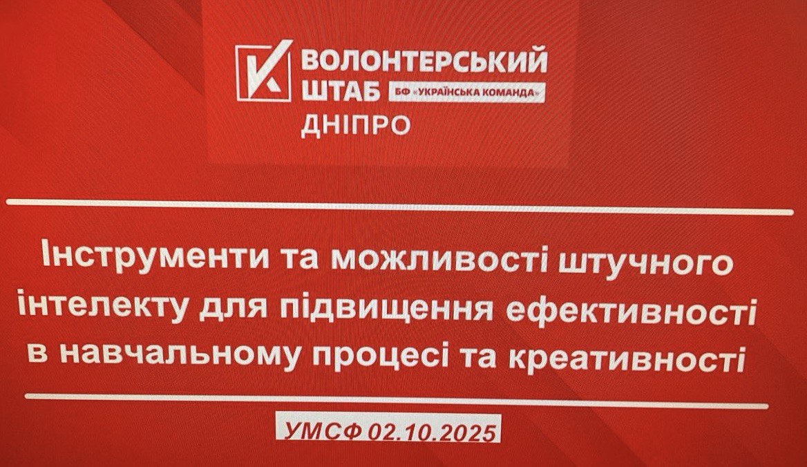 02 жовтня 2025 року кафедрою міжнародного права та кафедрою соціального забезпечення та податкової політики, за підтримки Волонтерського штабу «Українська команда», в рамках кураторської години та національно-патріотичного виховання, було проведено лекцію «Інструменти та можливості штучного інтелекту для підвищення ефективності в навчальному процесі та креативності».