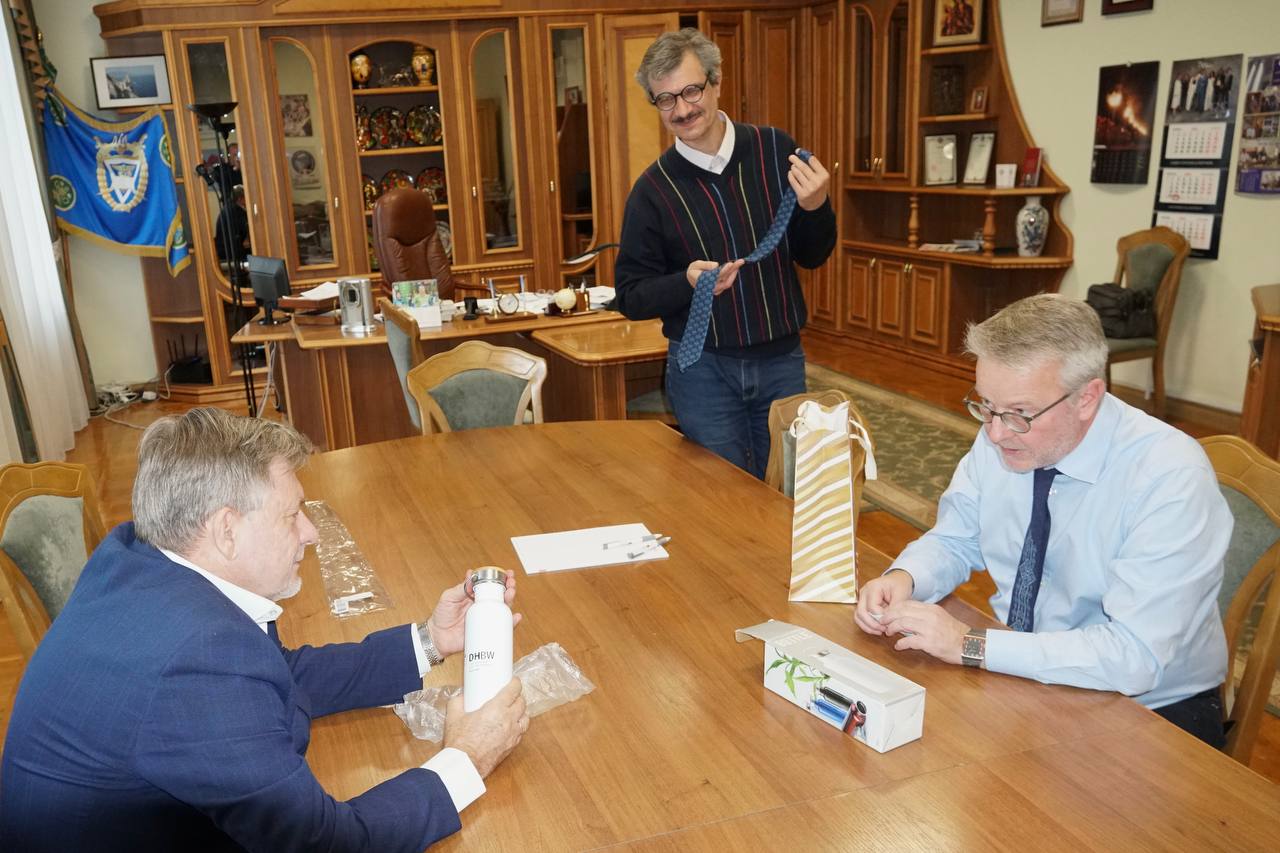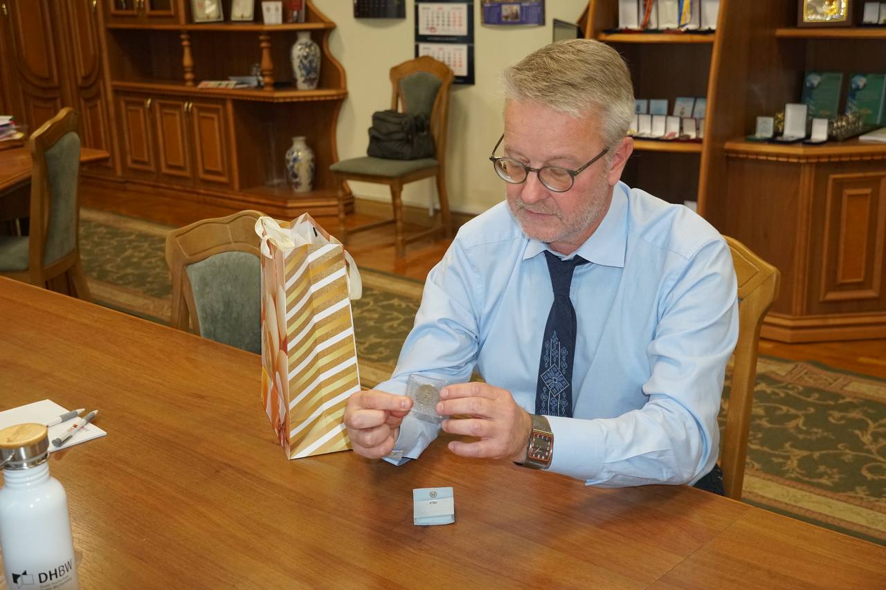 Він точно знає, що високо цінується в Університеті митної справи та фінансів – не лише знання, а й колекційні монети. Тож наша колекція поповниться монетою, випущеною в обмеженій кількості на честь 600-річчя заснування Гайдельберзький університет. А колекцію сувенірів академічного обміну прикрасить новий експонат з Баден-Вюртемберзького державного кооперативного університету.