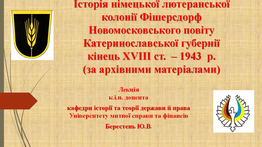В лекції були висвітлені окремі аспекти громадського життя колоністів під час німецької окупації 1941-1943 років.