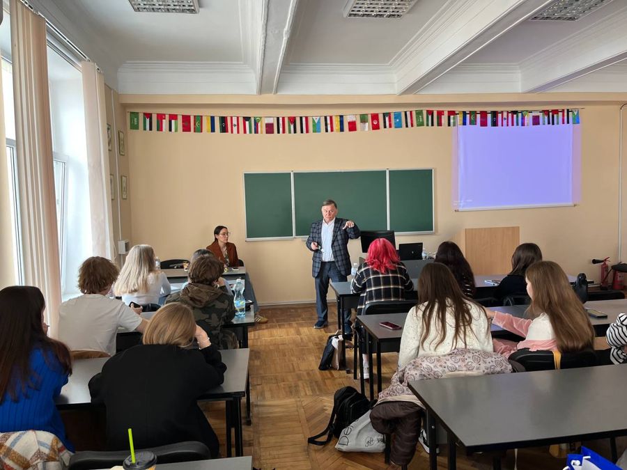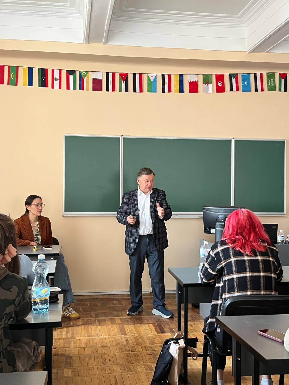 До здобувачів першого курсу освітньої програми "Журналістика, реклама та зв'язки з громадськістю" з гостьовою лекцією "Етапи та особливості масової комунікації Катеринославщини кінця 19 початку 20 сторіччя" був запрошений краєзнавець, дослідник локальної історії, член Національної спілки журналістів України, автор та укладач багатьох наукових видань Микола Чабан.
