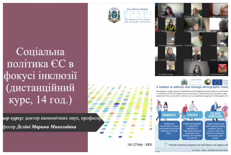 Представниці кафедри соціального забезпечення та податкової політики віта ЧЕРБА, Ірина ТУБОЛЕЦЬ та Вікторія ТАРАНЕНКО взяли участь у освітніх заходах в рамках імплементації проєкту Програми ЄС Еразмус+, модуль Жан Моне «Практики соціальної та економічної інклюзії в ЄС». Так, викладачі долучилися до інтенсивного онлайн-курсу «Принципи ЄС щодо різноманітності та інклюзивності для сталого розвитку».