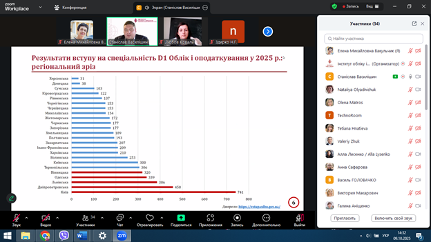 09 жовтня 2025 року викладачі кафедри обліку, аудиту, аналізу і оподаткування взяли участь у першому вебінарі  науково-педагогічного підвищення кваліфікації «Сучасні тренди, виклики та перспективи бухгалтерської й аудиторської професійної освіти та науки в умовах євроінтеграції».