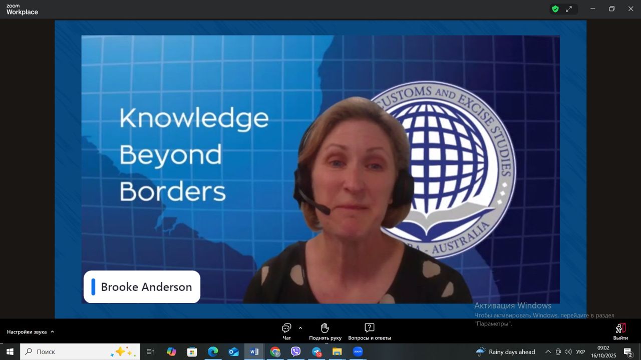 16 жовтня 2025 року завідувач кафедри міжнародного права ННІ права та міжнародно-правових відносин УМСФ Сергій ПЕРЕПЬОЛКІН долучився до роботи вебінару на тему «Стійкість Державних кордонів: Зелена Митниця в дії», що проводив Центр митних та акцизних досліджень (Канберра, Австралія). Всесвітня митна організація визначає «зелену митницю» як заходи, які митні адміністрації можуть вживати або розробляти для зменшення власного впливу на довкілля, захисту довкілля та сприяння зеленій торгівлі, а також для випробування трансформаційних ідей щодо досягнення досконалості в галузі сталого розвитку, тим самим сприяючи прогресу у досягненні відповідних Цілей сталого розвитку Організації Об’єднаних Націй. За головування ведучої Б. Андерсон на вебінарі з вітальною промовою виступив Д. Відовсон та шановні доповідачі Х. Нгуєн і Дж. Блекман. В кінці заходу учасники вебінару мали можливість поставити запитання та отримати відповіді на питання, пов’язані з темою вебінару.