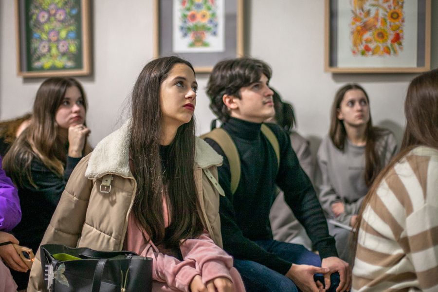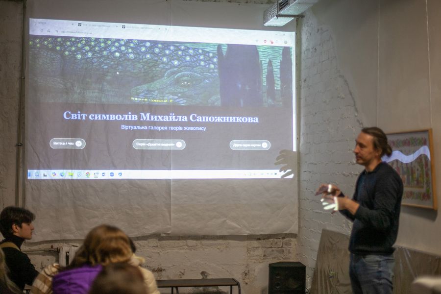 Студенти-дизайнери першого курсу (Д25-1) Університету митної справи та фінансів взяли участь у презентації унікального цифрового проєкту «Світ символів Михайла Сапожникова. Віртуальна галерея творів живопису».