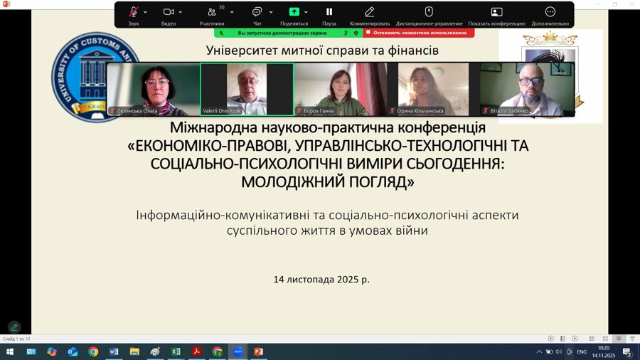 Здобувачі освіти за ОП «Кризова психологія», ОП «Кризова та реабілітаційна психологія» другого (магістерського) рівня вищої освіти та ОП «Психологія» (першого) бакалаврського рівня  14.11.2025 р. взяли участь в Міжнародній науково-практичній конференції «Економіко-правові, управлінсько-технологічні та соціально-психологічні виміри сьогодення: молодіжний погляд».