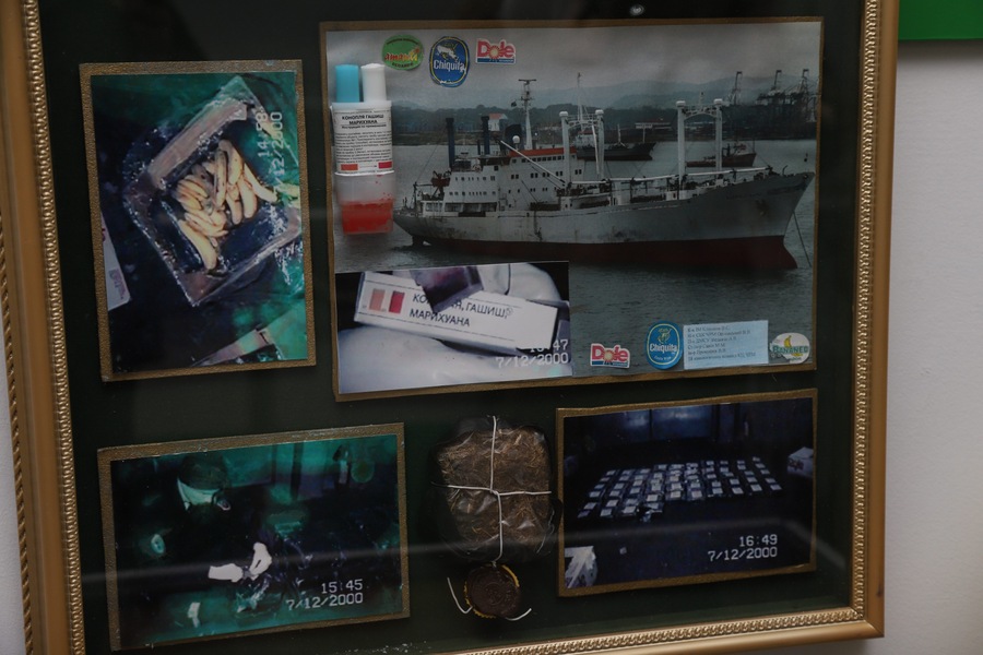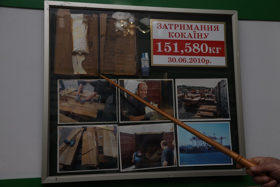 Другу позицію в контрабандному рейтингу впевнено займають наркотичні засоби. Для великих партій знову ж таки переважає морський шлях. В експозиції – приклади вилучень героїну і кокаїну, датовані 2007–2010 роками: ламінатні ламелі, труби, контейнери з багатошаровими сховками.