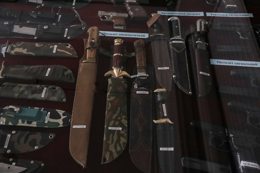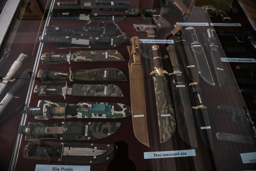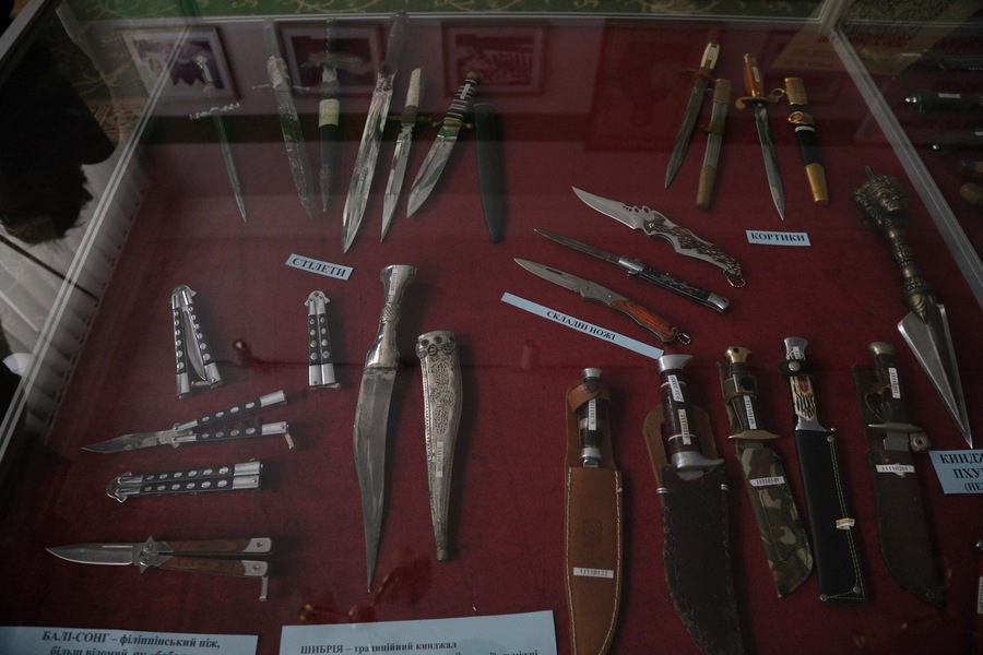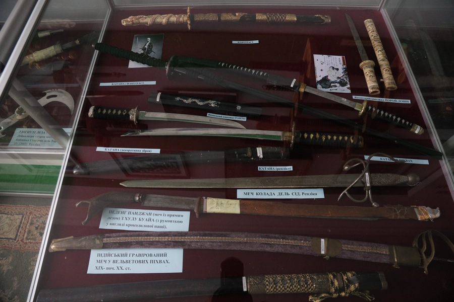 Ще одна популярна категорія – холодна і вогнепальна зброя. Ножі, кортики, багнети, навіть пістолети-запальнички. Частина з них – сувенірні репліки, але є й оригінали, пов’язані з різними військовими традиціями: від європейських до азійських.